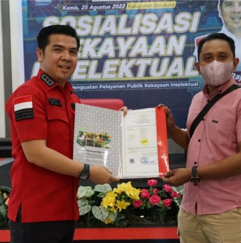 BATUBARA (FN) - Staf khusus Menkumham RI, Bane Raja Manalu melalui Direktorat Jenderal Kekayaan Intelektual (DJKI), mengabulkan permohonan seritifikat Kekayaannya Intelektual (KI) pelaku UMKM di Batubara. Satu dari 7 UMKM yang menerima, diantaranya Bandrek Joeli.